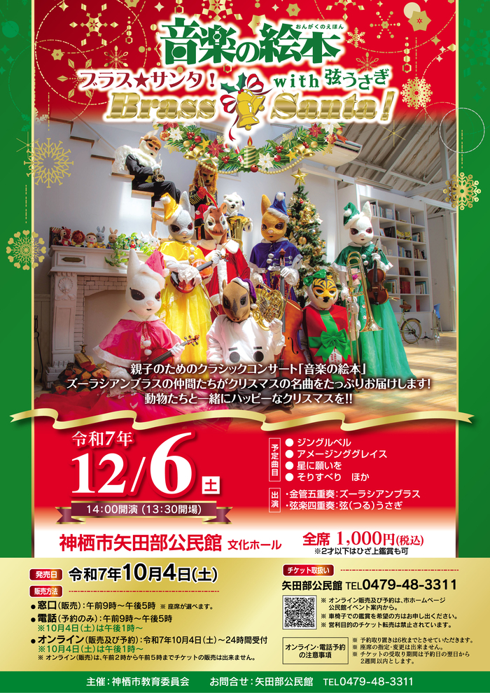 「音楽の絵本 ブラスサンタwith弦うさぎ」矢田部公民館イベントのご紹介
